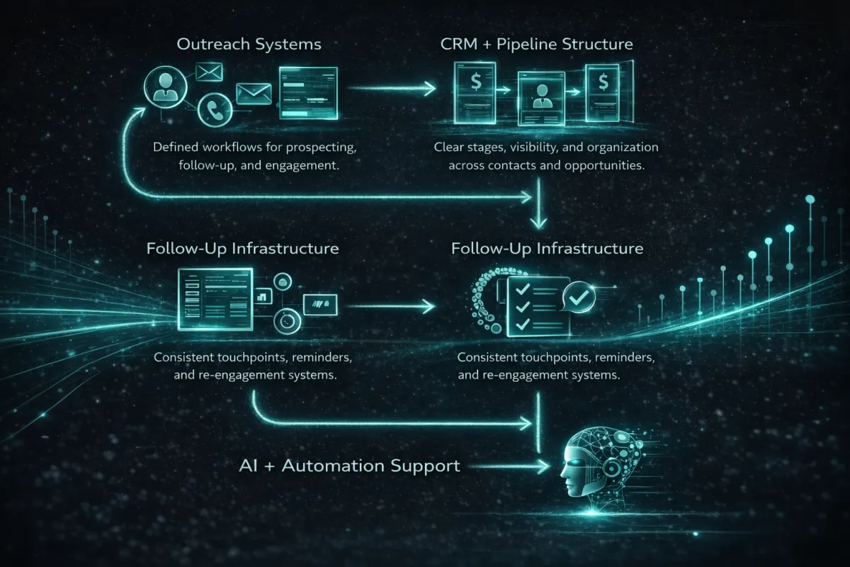 By building clear outreach systems, organized CRM and pipeline structures, consistent follow-up infrastructure, and practical AI-supported workflows, organizations improve visibility, accountability, and execution.