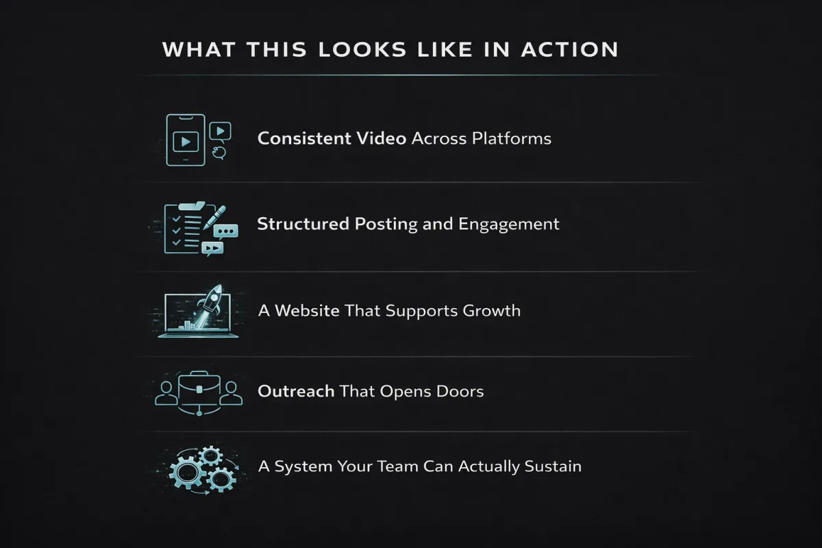 Video, social, websites, and outreach—built as one system to drive visibility, engagement, and growth.